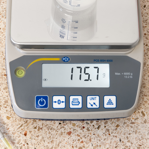 Rango de pesaje: 6000 g Resolución: 0,1 g Calibración de 1 punto con selección de peso Función de cómputo de piezas