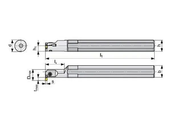 Barra de mandrinar para tronzado interior Características: sujeción prismática para lograr una elevada precisión de posicionamiento. El asiento optimizado de la plaquita contrarresta las elevadas fuerzas axiales de ambos lados. Suministro sin plaquitas de corte, sin destornillador. Aplicación: tronzado y torneado de ranuras, torneado de acanaladura perfilada y destalonado.