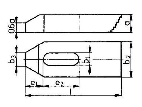Brida de sujeción con dientes escalonados Características: de acero templado, barnizado. Con superficies de sujeción y apoyo plano-paralelas. Aplicación: los bridas de sujeción pueden combinarse con diferentes bloques escalonados de sujeción y ajustarse así a diversos tamaños y formas de pieza.