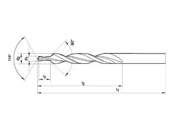 Características: perfil rectificado, corte hacia derecha , con afilado preciso de punta. Ángulo de hélice, espesor de alma y aumento de núcleo normales. La perforación y el avellanado se realizan en una pasada y alineándolos entre sí de forma exacta.