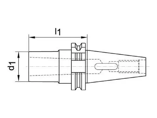 Casquillo intermedio DIN 69871, forma A, SK 50. Características: de acero cementado aleado, con una resistencia a la tracción en el núcleo de aprox. 950 N/mm² mínimo y una profundidad de temple mín. de 0,5 mm. Cono conforme a DIN 254. Tolerancia del ángulo de conicidad: AT3 Rugosidad superficial del cono: Ra < 0,001 mm Templado: 58 ±2 HRC Aplicación: para el alojamiento de herramientas con vástago cónico Morse y lengüetas de expulsión.