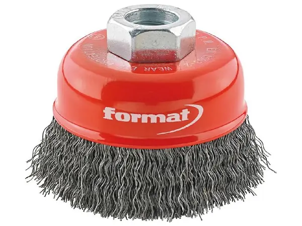 Cepillo de copa, alambre de acero, ondulado Características: Con rosca M14 x 2. Aplicación: Para utilizar en todas las amoladoras angulares monomanuales convencionales Para trabajos de limpieza sencillos a semicomplicados y para mecanizar superficies grandes. Ideal para rascar y matear, así como para eliminar pintura, barniz, rebabas, óxido, herrumbre, cascarilla, etc.