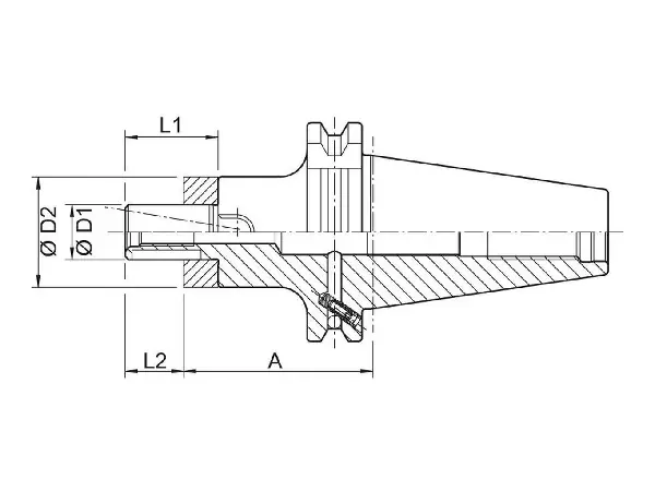 Cono portafresas combinado, DIN 69871, forma AD/B, SK40 Características: Equilibrado con precisión. De aleación de acero cementado, con una resistencia a la tracción en el núcleo de aprox. 950 N/mm² y una profundidad de temple de mín. 0,5 mm.. Cono conforme a DIN 254. Con ranuras transversales y longitudinales. Todas las superficies funcionales con mecanizado de precisión y calidad garantizada a través de controles 100% dobles. Tolerancia del cono: AT3 Templado: 60 –2 HRC Aplicación: Para sujetar fresas cilíndricas frontales DIN 841 y DIN 1880, así como fresas frontales cónicas DIN 842 y cabezales portacuchillas DIN 1830. Volumen de suministro: Mandril portafresas completo con tornillo de apriete de fresa, anillo de arrastre y muelle de ajuste.