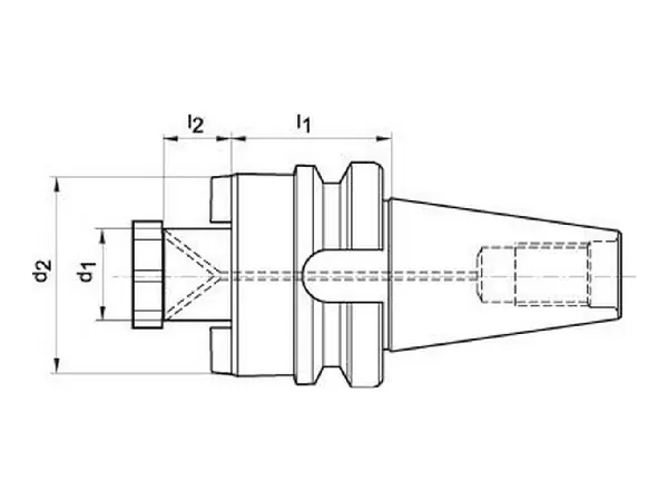 Alojamiento para cabezal portacuchillas, JIS B 6339 (MAS-BT), forma AD, BT 40 Características: de acero cementado aleado, con una resistencia a la tracción en el núcleo de aprox. 950 N/mm² y una profundidad de temple de mín. 0,5 mm. Superficies de contacto agrandadas y aperturas para el canal de refrigeración en la cara frontal. Cono conforme a DIN 254. Tolerancia del ángulo de conicidad: AT3 Rugosidad superficial del cono: Ra < 0,001 mm Tolerancia de orificio: H5 Templado: 58 ±2 HRC Aplicación: para el alojamiento de herramientas con ranura transversal según DIN 1880.