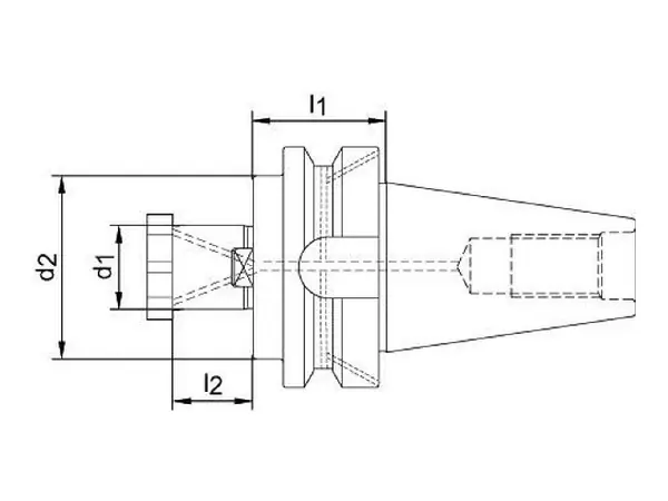 Alojamiento para cabezal portacuchillas, JIS B 6339 (MAS-BT), forma AD/B, BT 40 Características: equilibrado con precisión. De acero cementado aleado, con una resistencia a la tracción en el núcleo de aprox. 950 N/mm² y una profundidad de temple mín. de 0,5 mm. Todas las superficies funcionales con mecanizado de precisión y calidad garantizada a través de controles 100 % dobles. Con perforaciones de salida del refrigerante en la cara frontal para fresas y refrigeración interna. Tolerancia del cono: AT3 Templado: 60 –2 HRC Aplicación: para el alojamiento de cabezales portacuchillas y fresas con ranura transversal conforme a DIN 1880. Volumen de suministro: Alojamiento completo para cabezal portacuchillas con tornillo de apriete de fresa.