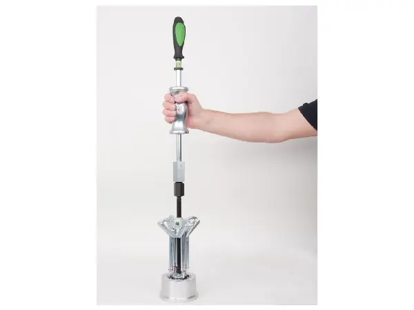 Características: gancho extractor bonificado. La forma especial del travesaño asegura la autosujeción de los ganchos extractores. Ganchos especiales para el montaje preciso en las vías de deslizamiento de los rodamientos, para una sujeción óptima y elevadas fuerzas de desmontaje. Las dos versiones de gancho están identificadas por colores. Los ganchos son fáciles de colgar con un movimiento de giro de 90° en el travesaño. Las superficies laterales de los ganchos sirven para la alineación óptima respecto al travesaño.