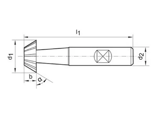 Fresa angular, DIN 1833 D, 60° Aplicación: se puede utilizar para el fresado de guías de cola de milano con una tolerancia de ángulo de alpha ± 15'.