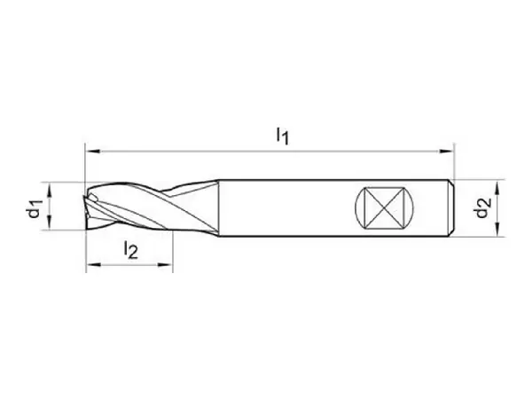 Fresa pequeña de metal duro integral Características: con corte al centro, adecuada para taladrar. Aplicación: se puede utilizar para el fresado de ranuras para chaveteros y lengüetas de ajuste, así como para el mecanizado universal. En comparación con un modelo de 2 filos, el avance es aprox. un 50% superior. La espiral de 45° permite obtener un corte suave y superficial y lográndose así una gran calidad de superficie. Evita la formación de rebabas en los cantos de corte.