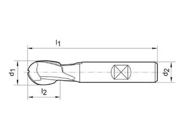 Fresa esférica, corta, HSS Co8, DIN 327, con recubrimiento de TiAIN Características: adecuada para taladrar. Aplicación: se puede utilizar para el fresado de perfiles semicirculares. Se puede usar para el fresado copiador y en cortes paralelos en la construcción de moldes. Velocidad de corte aprox. un 50% superior a la de herramientas sin recubrimiento. Apta para el mecanizado en seco.
