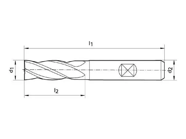 Fresa frontal, 4-6 filos, DIN 844-K, HSS-E PM, con recubrimiento de TiAIN Características: con corte al centro, adecuada para taladrar. HSS-E-PM destaca por su gran resistencia (bordes más estables, más resistente al desgaste) y por su mayor duración de corte. Adecuada en condiciones de corte inestables. Aplicación: se puede utilizar para el fresado frontal y de contornos.