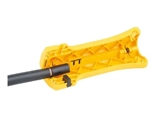 Para cable redondo (p. ej. NYM 3 x 1,5 mm² a 5 x 2,5 mm²), cable de datos (Cat 5–7), cable coaxial (RG 58, RG 59) y cable plano de instalación. Adecuado también para zurdos. Seguro de cierre con manejo para una mano.
