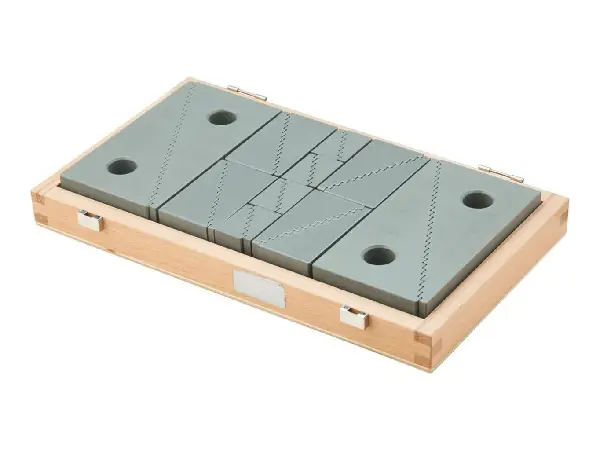 Juego de bloques escalonados de sujeción universales Format Volumen de suministro: Juego de bloques escalonados de sujeción universales con bloques escalonados de sujeción 8 unidades tamaño 1, 8 unidades tamaño 2, 4 unidades tamaño 3.