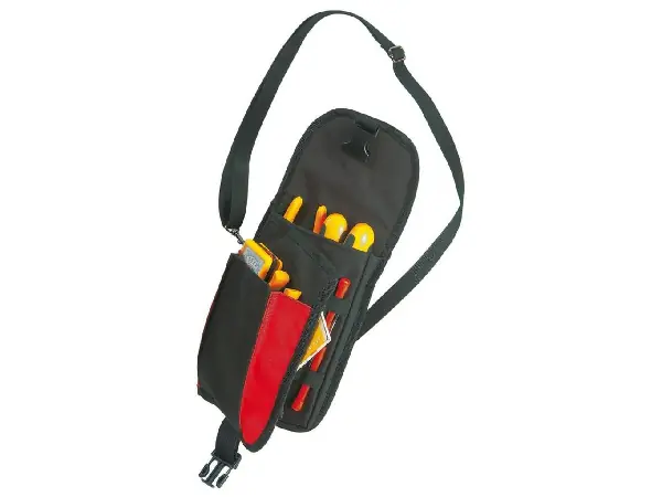Bandolera portaherramientas Características: De poliéster, con asa de transporte y lazo, así como correa ajustable. Provista de 1 compartimento acolchado para herramientas sensibles y 2 compartimentos con cremallera. Se suministra vacío.
