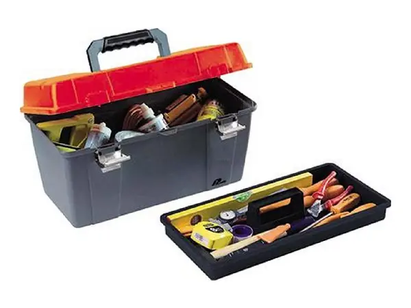 Maleta portaherramientas con asa de transporte Características: De plástico resistente a los golpes. Con asa de transporte extraíble para pequeñas piezas y herramientas sueltas. Asa con revestimiento de goma. Se suministra vacío.