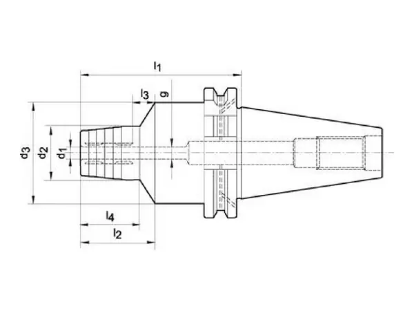 Características: material con resistencia a la tracción de 1600–1800 N/mm² y dureza de 52 ± 2 HRC. Por medio de una llave hexagonal con mango en T se comprime el aceite hidráulico a través de un juego de sujeción hidráulica (tornillo de presión, expulsor, junta). La presión generada origina una deformación uniforme del manguito de dilatación, lo que tensa el vástago de la herramienta con una mayor precisión de concentricidad (máx. 3 µm). Cono conforme a DIN 254. Agujero para soporte de datos/chip (Ballauf).