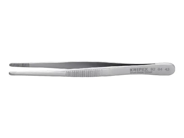 Pinzas de precisión, forma roma, con superficies de agarre de estriado fino, con puntas redondas de aprox. 2,7 mm de anchura