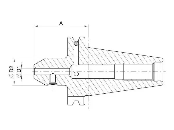 SK 40 Características: de acero cementado aleado, con una resistencia a la tracción en el núcleo de aprox. 950 N/mm² mínimo y una profundidad de temple mín. de 0,5 mm. Cono conforme a DIN 254. Tolerancia del ángulo de conicidad: AT3 Rugosidad superficial del cono: Ra < 0,001 mm Tolerancia de orificio: H5 Templado: 60 –2 HRC Aplicación: para la sujeción de fresas con vástago cilíndrico y superficie de arrastre lateral según DIN 1835 B y DIN 6535 HB. Volumen de suministro: portaherramientas con tornillo de apriete.