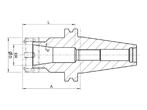 Portapinzas FORMAT GT tipo ER, SK 50 Características: de acero cementado aleado. Tolerancia del ángulo de conicidad: AT3 Rugosidad superficial del cono: Ra < 0,001 mm Tolerancia de orificio: H5 Templado: 60 –2 HRC Aplicación: para la sujeción de herramientas con vástago cilíndrico en pinzas portapiezas conforme a DIN 6499.