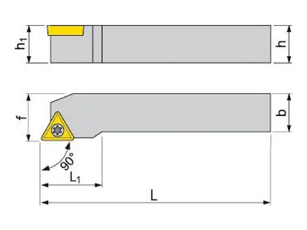Portaplaquitas ISO, 90°. STGCR/L Características: portaplaquitas para plaquitas de corte 7° positivas, sujeción mediante tornillo, portaherramientas niquelado. Suministro sin plaquitas de corte, sin destornillador. Aplicación: cilindrar.