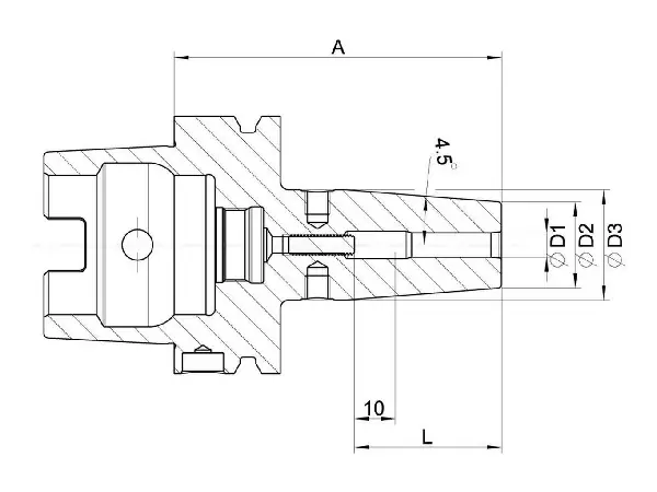 Portaherramientas de amarre térmico, DIN 69893, forma A, HSK 63 Características: equilibrado con precisión. Todas las superficies funcionales con mecanizado de precisión y calidad garantizada a través de controles 100% dobles. Más preciso que DIN. De acero resistente al calor. Posibilidad de equilibrado de precisión con tornillos oscilantes. Para herramientas HSS y HM. Tolerancia de vástago: h6. Calidad de equilibración: G2.5 25000 rpm Precisión de concentricidad: < 0,003 mm en la herramienta (3 x d). Templado 54 –2 HRC. Aplicación: adecuado para aparatos de contracción por inducción, contacto y aire caliente. Volumen de suministro: portaherramientas de amarre térmico con tornillo de ajuste de longitud, sin tubo de refrigerante.