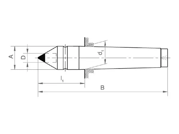 Punto de centrado fijo, completo con inserto de metal duro Característicos: de acero para herramientas, totalmente templado y rectificado, ángulo de punta de 60°.