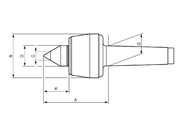 Características: cuerpo templado y rectificado, con ángulo de punta de 60°. Punta giratoria con inserto de metal duro resistente al desgaste. Rodamientos triple para elevada carga axial y radial. Lubricado de por vida.