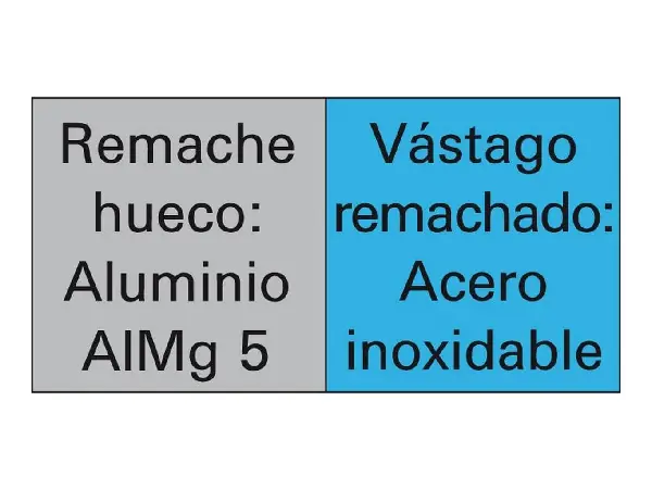Remache ciego CAP® en aluminio/acero fino estándar, hermético e impermeable Características: Remache hueco de aluminio AlMg 5, perno remachado de acero inoxidable.