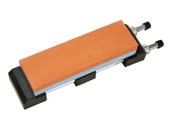 Soporte de piedra de afilar Características: de acero fino inoxidable, con mordazas de sujeción antideslizantes de goma. Mediante la mordaza para soporte medio se pueden sujetar también piedras más finas sin que se partan. Aplicación: para sujetar piedras de afilar de longitudes 135–220 mm.