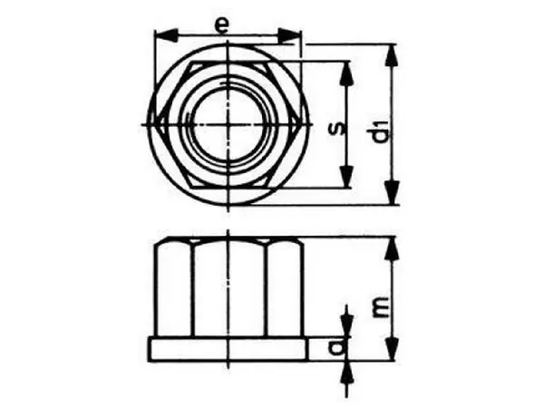 Tuerca hexagonal de precisión con collar Características: Altura 1,5 d. Forjado y bonificado. Un extremo con collar, por lo que no se necesitan arandelas si el tamaño de la perforación o de la hendidura de sujeción lo permiten. Material: acero bonificado a la clase de resistencia 10.